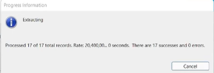 The end of the export process saves the CSV file with data to the provided location.