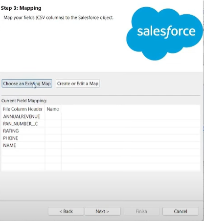 Next, you have to create a mapping between the field names in the CSV file and the object’s fields.