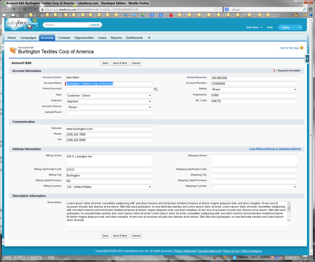 The results are amazing. With less then 10 lines of CSS the usability of all salesforce pages enhances dramatically. The fluid width smoothly adapts to small and large screens. No screen-space is wasted. Looks less cluttered.