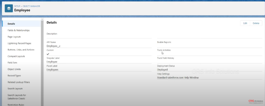You can add the object label (Employee), plural label (Employees), and other necessary information here.