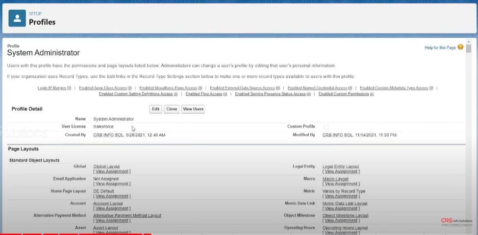 If you open this profile, you’ll see how it lists the different access permissions and page layouts associated with it by default. It’ll also give you different options to change these existing settings to create something more tailored to your needs.
