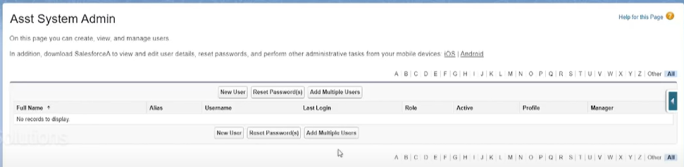 To view a list of profiles available in your org, you can simply search for “profiles” and go to the Profiles pane listed under Users. You’ll be able to see the profile you’re currently assigned, System Administrator, with this view.