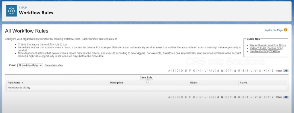 You can find the Workflow Rules pane on Salesforce by searching for it on Quick Find.