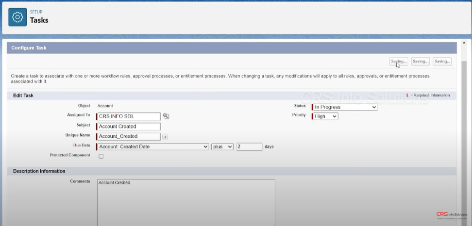 For example, if you want the workflow to create a new task, you have to provide its details such as the due date, status, and priority.