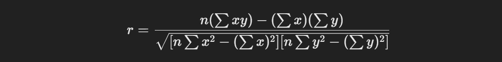 This formula helps me determine how closely two variables move in relation to each other. For example, a high positive value of r indicates that as one variable increases, the other variable also tends to increase, while a high negative value shows that as one variable increases, the other tends to decrease.
